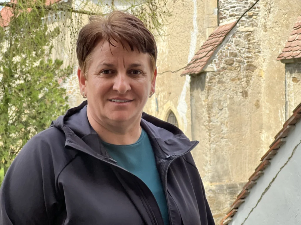 În fața bisericii, cu cheile în mână, profesoara de limbă germană și engleză din sat, Dana Crișan, își întâmpină vizitatorii. De 12 ani este omul bun la toate. „Am și mașină de tuns iarba. Vara, tot la trei săptămâni trebuie tăiată”, spune femeia în timp ce descuie poarta incintei.