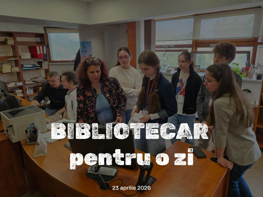 Unul dintre momentele centrale ale programului este proiectul „Bibliotecar pentru o zi”, care va avea loc joi, 23 aprilie 2026, între orele 10:00 și 16:00. Inițiativa oferă participanților ocazia de a descoperi activitatea din spatele rafturilor, de a înțelege modul de organizare a colecțiilor și de a interacționa direct cu cititorii.