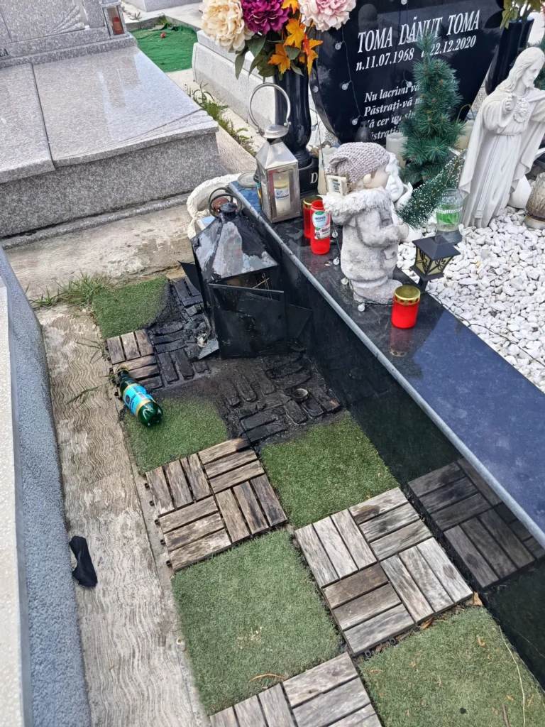 „Azi am fost în apropierea acestui loc de veci care ardea cu foc deschis! Am băgat 2 bidoane de 5 l de apă și l-am stins.”-a scris acesta pe rețelele de socializare