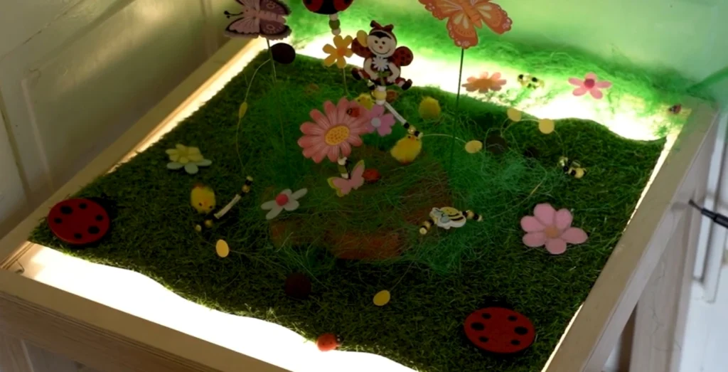 Pentru activitățile sportive și recreative, grădinița a fost echipată cu saltele, spaliere, mingi, trambulină și diverse structuri pentru dezvoltarea echilibrului și coordonării, precum trasee senzoriale și tuneluri de joacă.