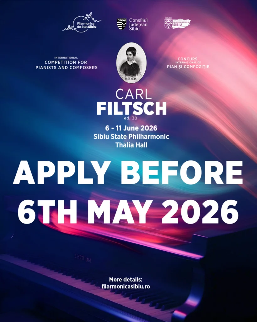Tinerii pianiști care doresc să participe la Concursul-Festival Internațional de Interpretare Pianistică și Compoziție „Carl Filtsch” mai au la dispoziție doar câteva zile pentru a se înscrie. Termenul limită este 6 mai 2026.