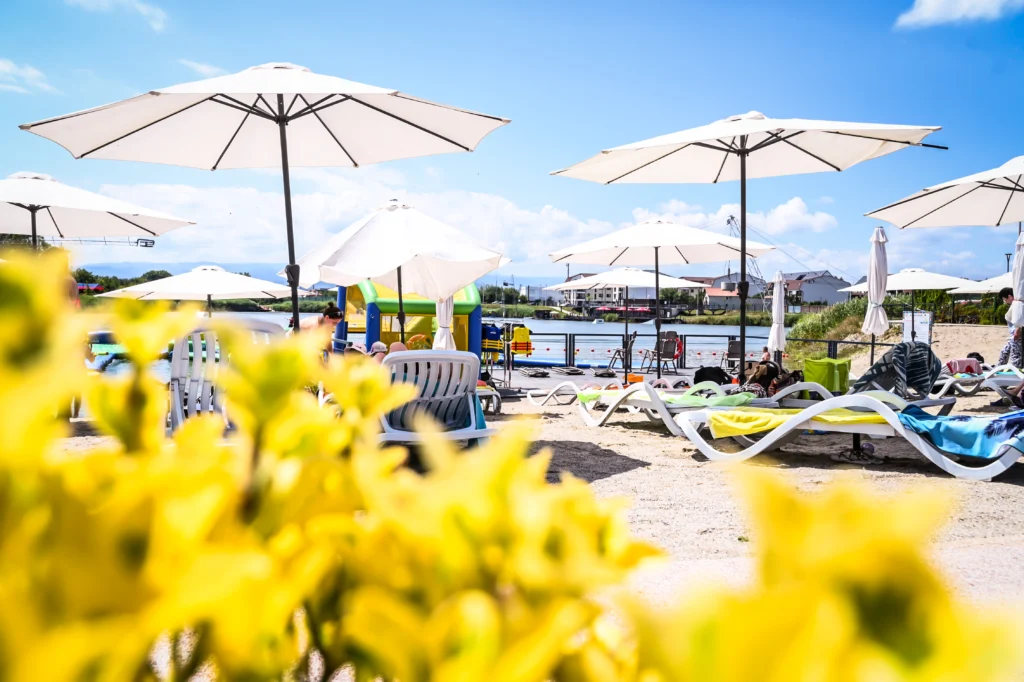 - Plajă și sport – zona de plajă cu nisip este deschisă pentru relaxare, volei sau joacă pentru copii. Odată cu încălzirea vremii, vor deveni disponibile și înotul, precum și locul de joacă plutitor. Calitatea apei este verificată la fiecare două săptămâni, iar salvamarii vor asigura siguranța vizitatorilor.