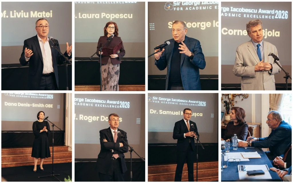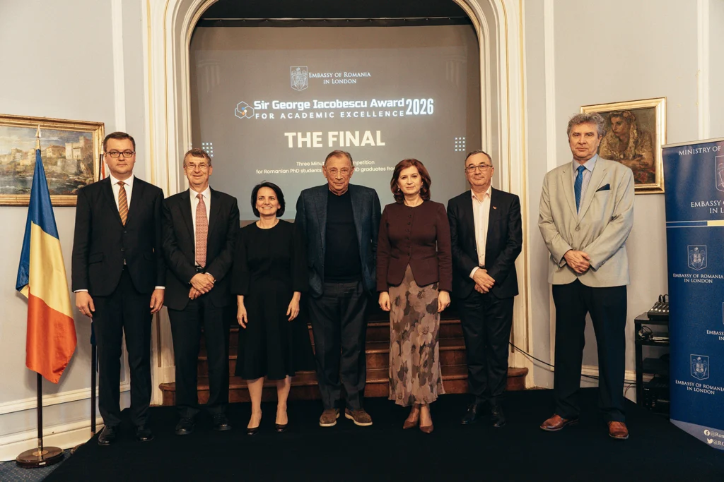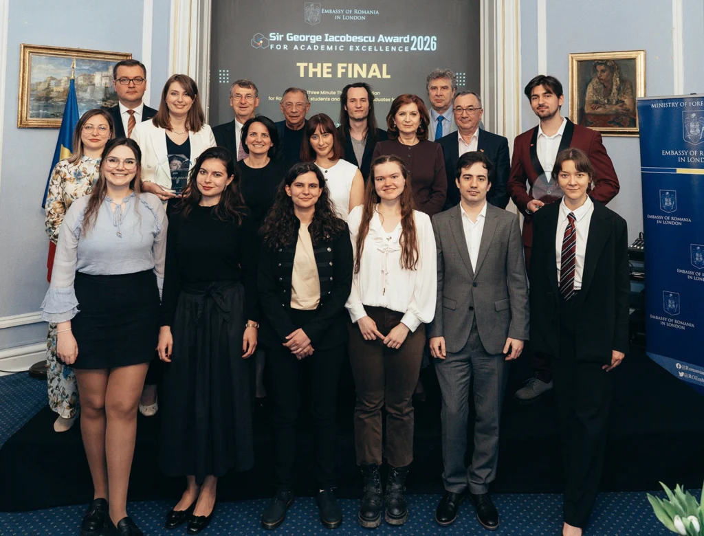 Londra – Ambasada României în Regatul Unit al Marii Britanii și Irlandei de Nord a organizat vineri, 24 aprilie, finala celei de-a doua ediții a competiției „Premiile Sir George Iacobescu pentru Excelență Academică”, un eveniment dedicat doctoranzilor români care desfășoară activități de cercetare în universități britanice de prestigiu.