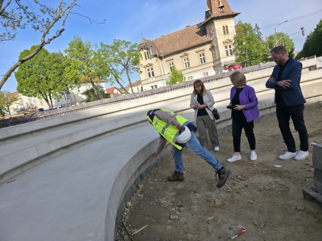 Un alt punct verificat de primar a fost șantierul de pe bulevardul Victoriei, în zona Cercului Militar, unde se amenajează o nouă piațetă urbană. Investiția face parte din lucrările de reconfigurare și modernizare a spațiilor publice din oraș.