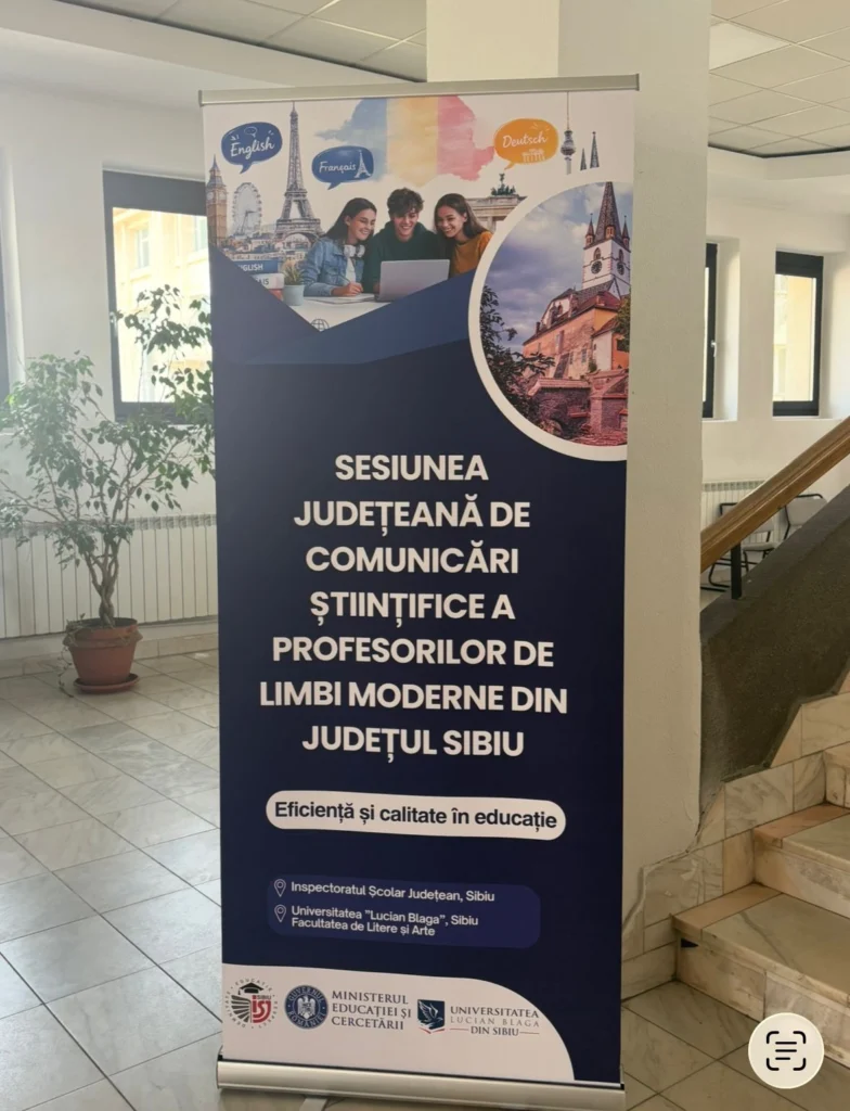 Inspectoratul Școlar Județean Sibiu a organizat, în data de 28 aprilie 2026, Sesiunea Județeană de Comunicări Științifice a Profesorilor de Limbi Moderne, un eveniment dedicat schimbului de bune practici și inovării în educație. Manifestarea s-a desfășurat în parteneriat cu Universitatea „Lucian Blaga” din Sibiu, prin Facultatea de Litere și Arte.