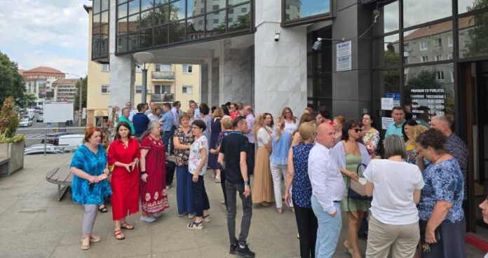 Aproximativ 40 de angajați ai ANAF Sibiu au ieșit luni, la prânz, în fața sediului instituției, într-un protest spontan față de intenția Guvernului de a plafona sporul de condiții vătămătoare de muncă.