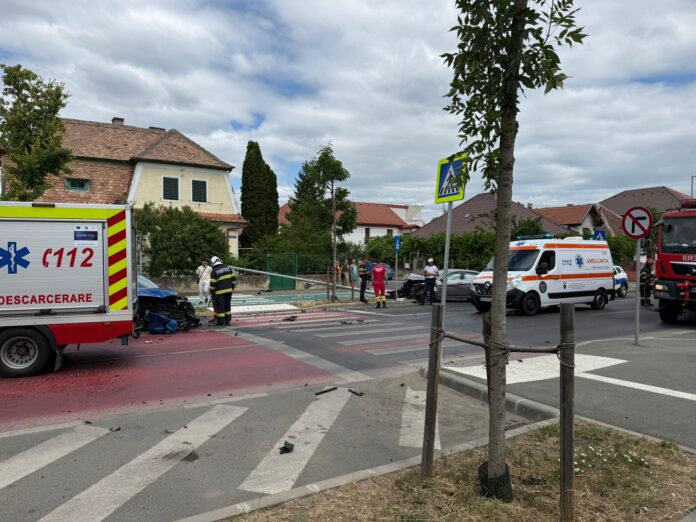Două autoturisme s-au ciocnit violent pe Calea Dumbrăvii. În urma impactului au intervenit de urgență echipaje de la Ambulanță, Pompieri, Poliție și Descarcerare.