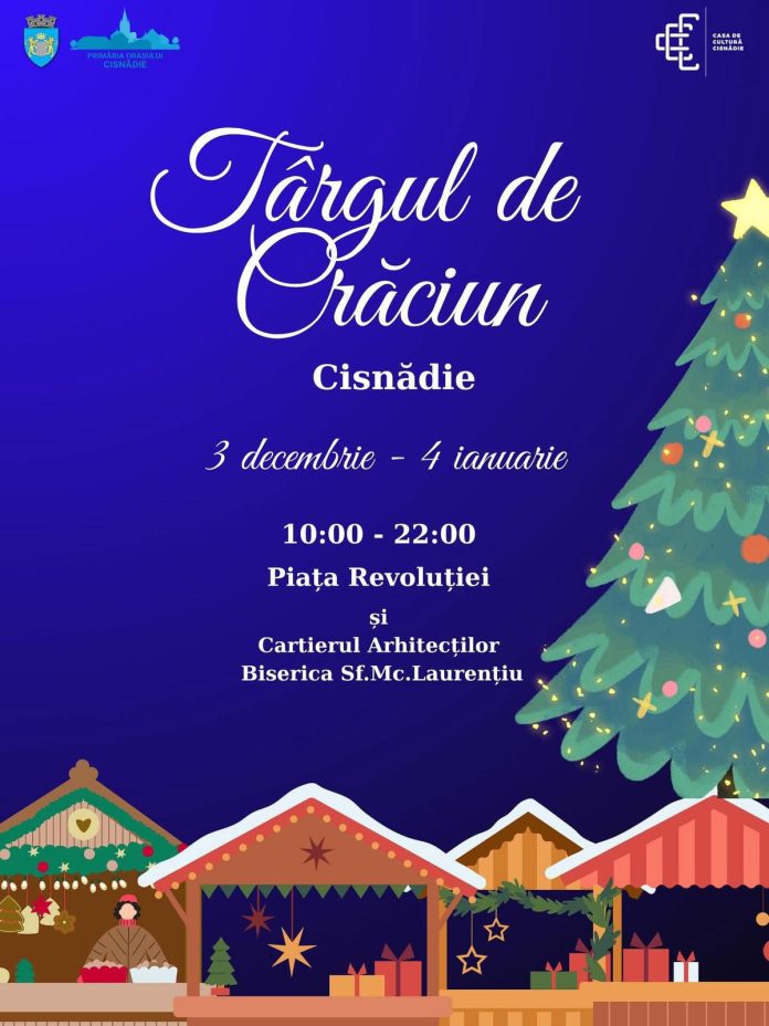 Primăria din Cisnădie a decis și anul acesta ca Târgul de Crăciun și luminițele sclipitoare să fie în ambele locații ale orașului. Inaugurarea târgului de Crăciun a fost confirmată pe data de 3 decembrie la ora 18:00 în Piața Revoluției și va fi însoțită de momentele artistice susținute de elevii unităților de învățământ din Cisnădie, ansamblul de dansuri populare al Casei de Cultură și concert susținut de trupa Joyband.