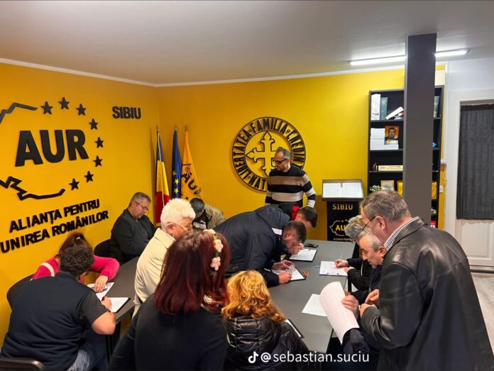 La sediul AUR Sibiu și la toate sediile partidului AUR din județul Sibiu a început strângerea de semnături pentru candidatura lui George Simion la alegerile prezidențiale. După respingerea candidaturii lui Călin Georgescu și de către Curtea Constituțională, astăzi, George Simion, președintele partidului AUR, și-a anunțat propria candidatură.