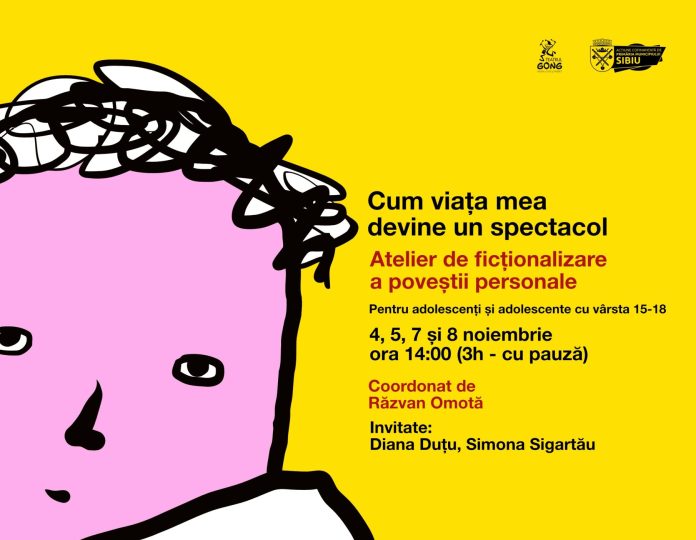 Teatrul pentru Copii și Tineret „Gong” Sibiu invită liceenii cu vârste între 15 și 18 ani să participe la atelierul „Cum viața mea devine un spectacol”, desfășurat între 4 și 8 noiembrie și coordonat de actorul și poetul Răzvan Omotă. Participarea este gratuită, în limita locurilor disponibile.