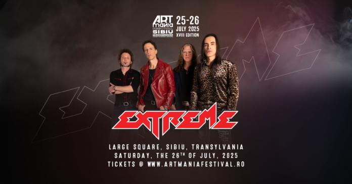 Extreme, una dintre cele mai respectate trupe din scena hard rock, cunoscută pentru hituri precum More Than Words și Get the Funk Out, vine pentru prima dată la ARTmania. Trupa americanǎ va urca pe scena din Piața Mare din Sibiu în 26 iulie.