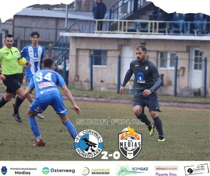 ACS Mediaș a suferit o înfrângere în primul amical al iernii. Pe stadionul CFR Simeria, Corvinul a trecut cu 2-0 de formația sibiană.
