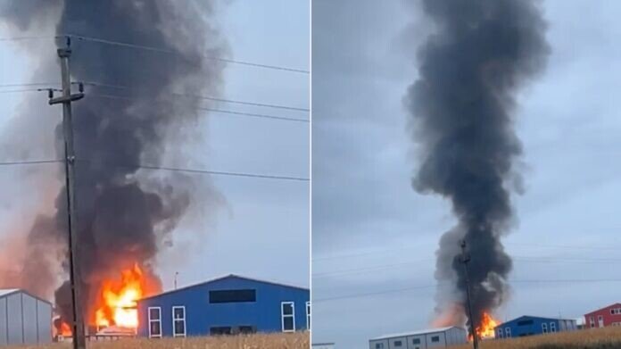 Se simulează un incendiu, în exercițiu fiind angrenate trei autospeciale de stingere, o autoscară, o autospecială de descarcerare și un echipaj SMURD.