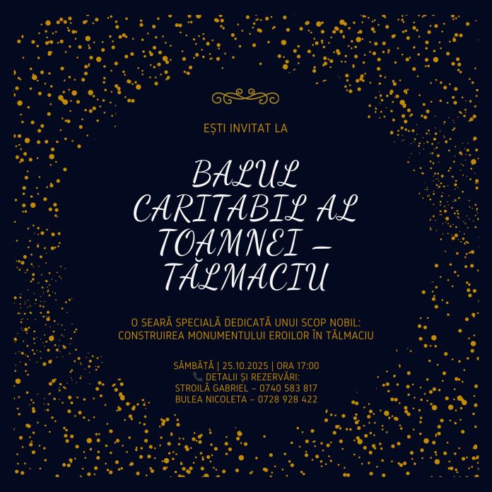 Orașul Tălmaciu găzduiește în 25 septembrie, de la ora 17:00, „Balul Caritabil al Toamnei”, un eveniment organizat în scopul strângerii de fonduri pentru construirea unui monument dedicat eroilor neamului.