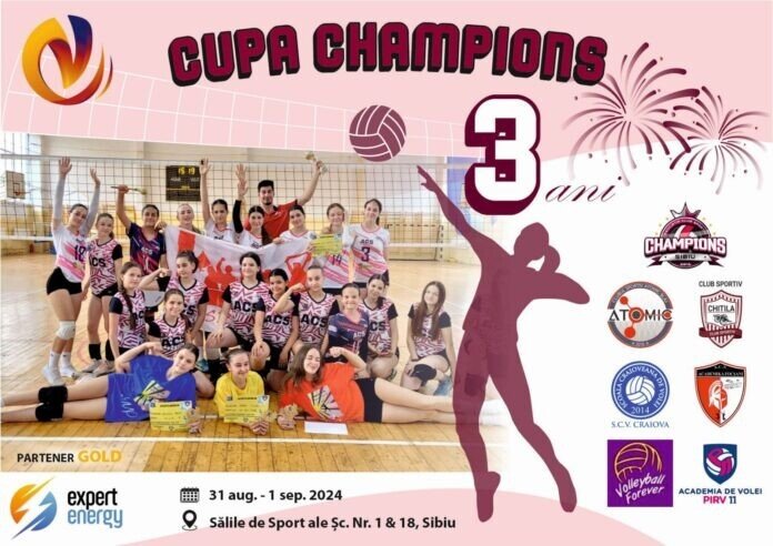 Cupa Champions Juniors – Școala Gimnazială Nr. 1- Sâmbătă, 31 august: – Ora 10: ACS Champions Sibiu B – ACS Champions Sibiu C – Ora 12: ACS Champions Sibiu B – CS Volleyball Forever Cluj – Ora 14: ACS Champions Sibiu C – CSV Craiova B – Ora 16: ACS Academia de Volei Pîrv11 – CS Volleyball Forever Cluj – Ora 18: ACS Champions Sibiu B – CSV Craiova B – Ora 20: ACS Champions Sibiu C – ACS Academia de Volei Pîrv11- Duminică, 1 septembrie: – Ora 9: CS Volleyball Forever Cluj – CSV Craiova B – Ora 11: Locurile 5-6 din Cupa Champions – Ora 13: ACS Champions Sibiu B – ACS Academia de Volei Pîrv11 – Ora 15: ACS Champions Sibiu C – CS Volleyball Forever Cluj – Ora 17: ACS Academia de Volei Pîrv11 – CSV Craiova B – Ora 19: Festivitatea de premiere.