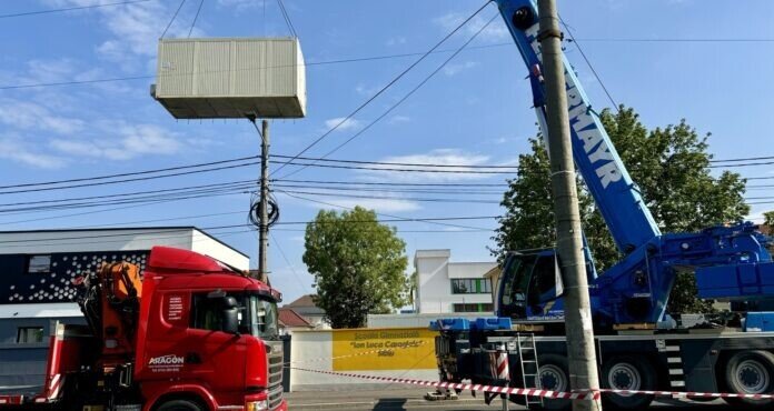 Azi a fost livrat primul, urmând ca luni să mai fie livrat cel de-al doilea și să se treacă la montarea lor. Fiecare container, cu o suprafață de 55 metri pătrați, va găzdui o sala de clasă.”