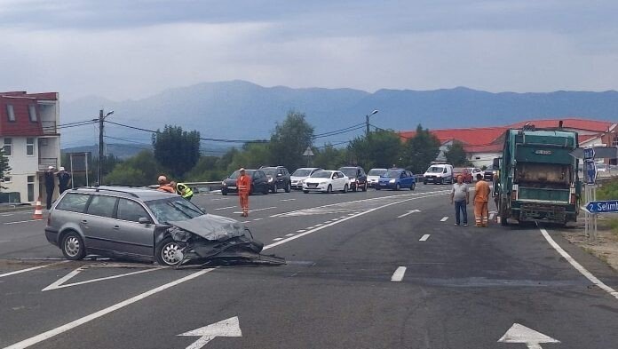 Un accident violent între o mașină și o autoutilitară de la salubritate, s-a produs în această dimineață la intersecția DN 1 cu localitatea Șelimbăr.