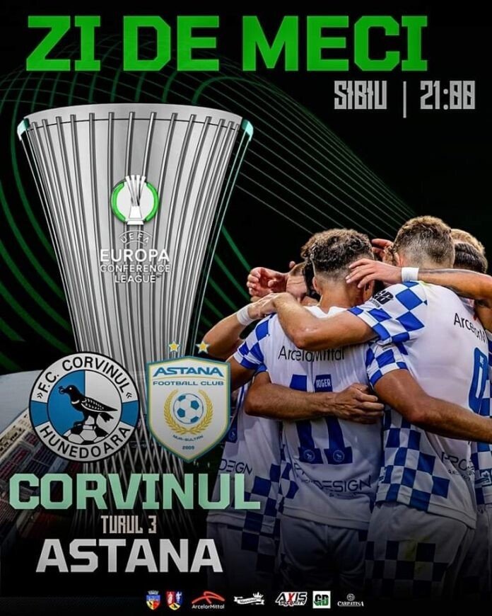 Un nou meci de cupe europene se va juca joi seara pe stadionul Municipal din Sibiu. De la ora 21.00 se vor întâlni Corvinul Hunedoara și Astana.
