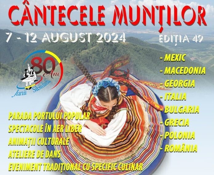 În luna august, Sibiul devine capitala folclorului internațional cu ocazia celei de-a 49-a ediții a Festivalului CÂNTECELE MUNȚILOR ce se desfășoară în perioada 7 – 12 august 2024!
