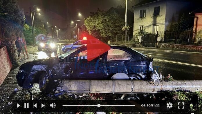Din cauza vitezei și a carosabilului umed, șoferul începător a pierdut controlul direcției de deplasare și s-a izbit cu mașina într-un stâlp de iluminat public. În urma impactului violent, stâlpul a fost rupt din temelie, căzând pe carosabil.