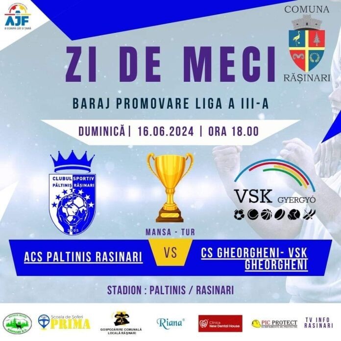 Partida dintre echipa sibiană, ACS Păltiniș Rășinari și CS Gheorgheni se va juca cu începere de la ora 18.00 pe stadionul din Rășinari. Federatia Română de Fotbal a anunțat și numele delegatul de joc, Mihai Duras din București. Păltiniș Rășinari a devenit campioana județului Sibiu după o luptă inițială în 3, cu Voința Sibiu și FC Avrig, apoi doar cu echipa suporterilor sibieni. Păltiniș Rășinari și-a asigurat primul loc după victoria cu 2-1 obținută în derby-ul de pe stadionul Obor cu Voința Sibiu. După acel joc, Păltiniș Rășinari a menținut avansul de două puncte până în ultima etapă, când l-a majorat la cinci, după înfrângerea contracandidatei.