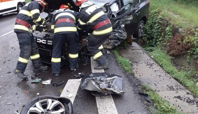 O mașină înmatriculată în județul Sibiu a fost implicată, în această dimineață,într-un accident rutier produs în localitatea Robești, pe DN7 – Valea Oltului.