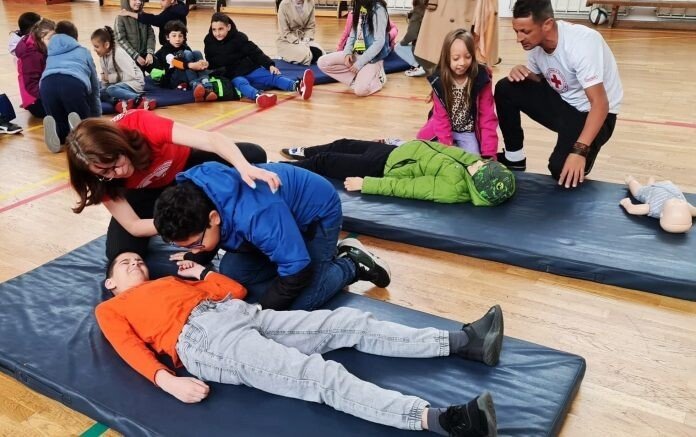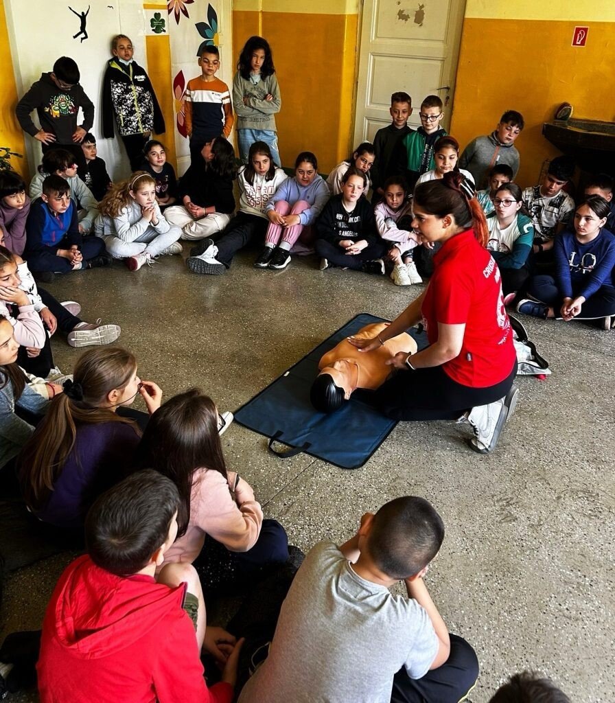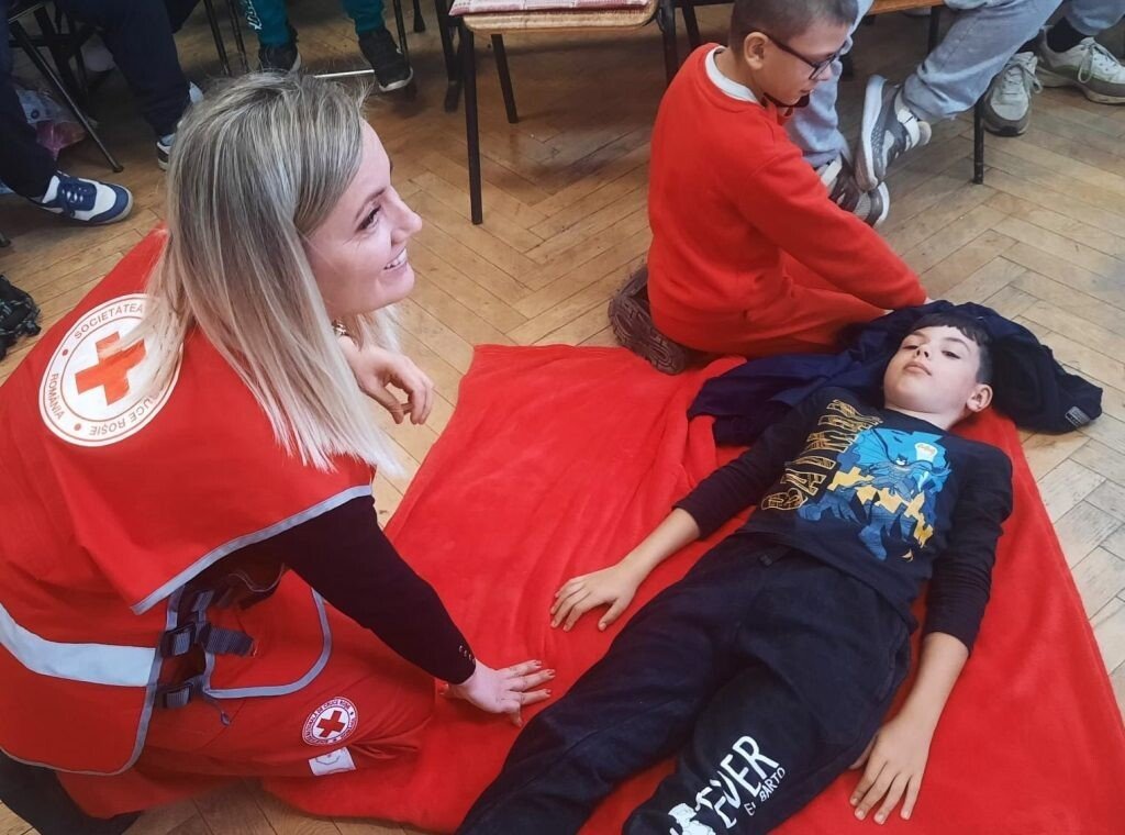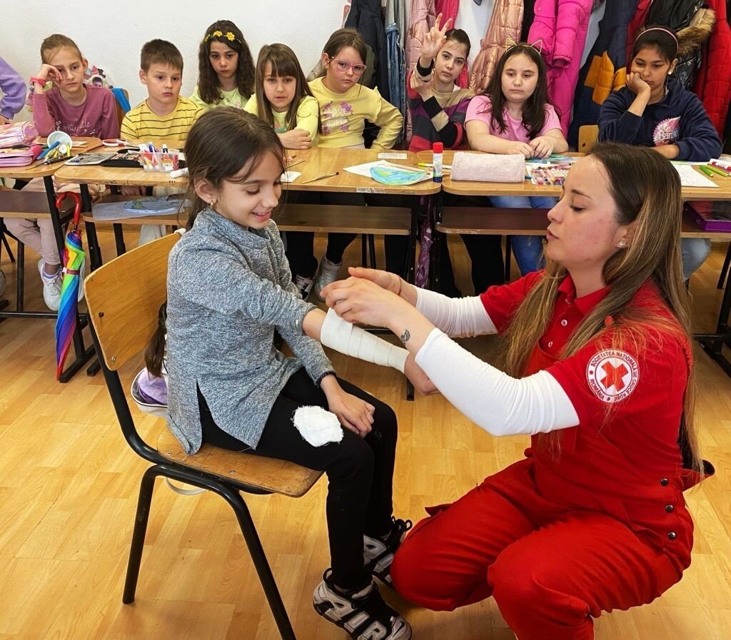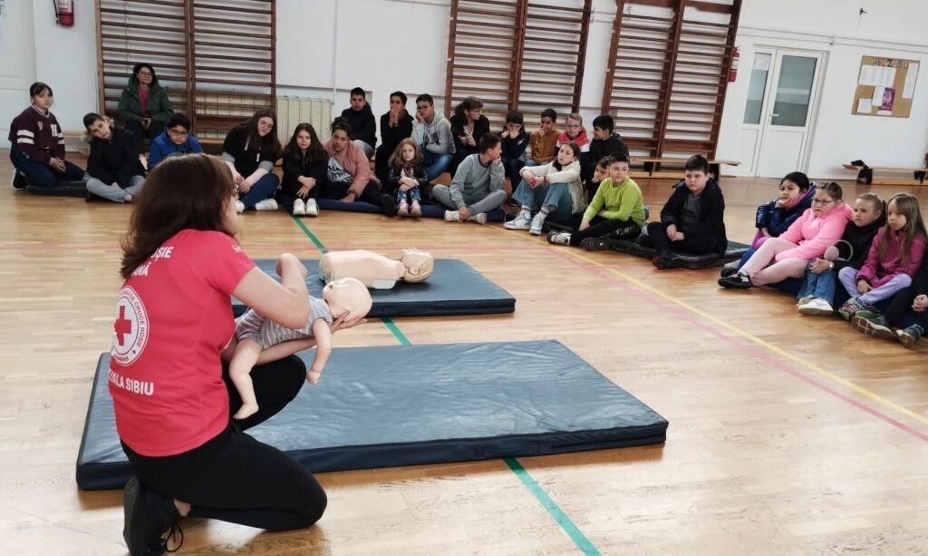 Astfel 13 voluntari ai Crucii Roșii Sibiu au fost prezenți zilnic, pe parcursul acestei săptămâni, în 9 școli din județul Sibiu și au realizat demonstrații de prim ajutor pentru cei mici.