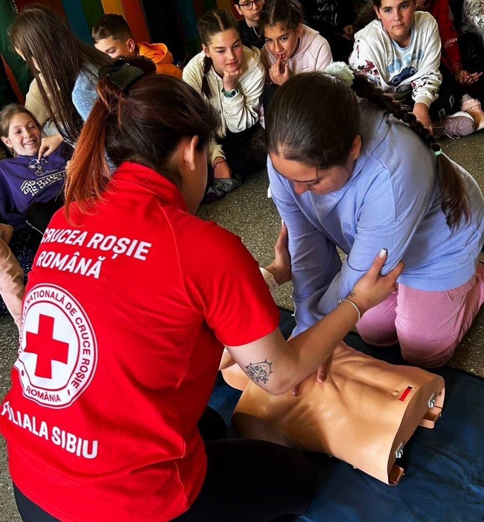 ”La Sibiu, scoliile au marca săptămâna verde, iar noi am fost din nou extrem de solicitați, ca în fiecare an. Cu sprijinul voluntarilor și al angajaților, am reușit să ajungem la peste 900 de copiii din cadrul unităților de învățământ preuniversitar și să realizăm demonstrații de prim ajutor. Cei mici au fost foarte încântați să învețe manevra Heimlich, resuscitarea, cum se pansează o rană dar și cum să apeleze serviciul de urgența 112. Ca de fiecare dată, ne bucurăm să fim în mijlocul comunității sibiene și le mulțumim voluntarilor care ne sunt alături” – Raluca Morar, Director, Crucea Roșie Filiala Sibiu.