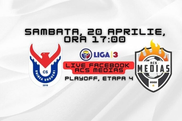 ACS Mediaș va disputa sâmbătă după-amiază partida din cadrul etapei a patra a play-off-ului ligii a treia, seria a noua. Partida Unirea Ungheni – ACS Mediaș va începe la ora 17.00 și va fi transmisă pe pagina de facebook a clubului sibian.