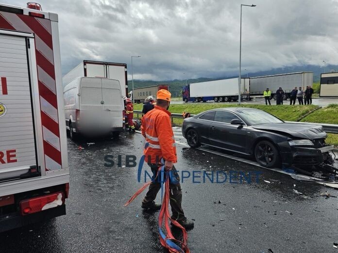 Reamintim faptul că ieri, în jurul orei 13:00, pe autostrada A1 Sibiu – Boița, un microbuz s-a izbit puternic de remorca unui autocamion. La puțin timp, o mașină a derapat și s-a izbit de parapet.
