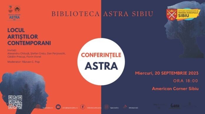 Arta contemporană și locul artiștilor contemporani sunt subiectele care vor fi abordate miercuri 20 septembrie a.c., de la ora 18:00, în cadrul celei de-a doua întâlniri din cadrul „Conferințele ASTRA”, un proiect cofinanțat de Primăria Municipiului Sibiu și organizat de Biblioteca Județeană ASTRA Sibiu, instituție susținută de Consiliul Județean Sibiu.
