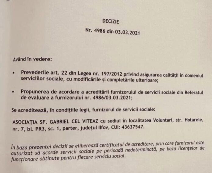 Atașat, prezentăm, din nou, actul prin care doamna Turcan a semnat decizia de eliberare a certificatului de acreditare pentru ”azilul groazei” din Voluntari.