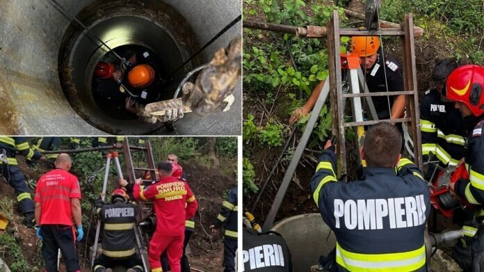 Operațiune contra cronometru, în această după-amiază, pe raza localității Șelimbăr, în zona Șopa. Pompierii și medicii sibieni au salvat un bărbat rămas captiv în puțul unei fântâni.