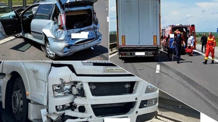 Astfel, în timp ce conducea un autocamion pe banda 1, un cetățean străin în vârstă de 36 de ani, pe fondul nepăstrării distanței de siguranță, a intrat în coliziune cu autoturismul condus în fața sa de către un bărbat în vârstă de 33 de ani, din județul Vâlcea, proiectându-l pe banda 2, unde a fost lovit apoi de alt ansamblu tir, condus de către un bărbat în vârstă de 28 de ani, din județul Arad.