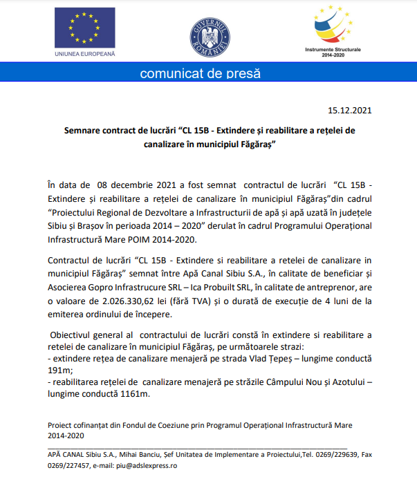Prin ordonanța procurorului din cadrul Parchetului de pe lângă Tribunalul Sibiu, jud. Sibiu, din data de 03.12.2021, s-a dispus începerea urmăririi penale „in rem” pentru comiterea infracțiunilor de trafic de influență și cumpărare de influență.