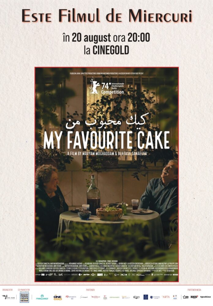 Publicul cinefil are ocazia să urmărească la CineGold filmul iranian My Favorite Cake, un titlu premiat internațional, care aduce pe ecran o emoționantă poveste despre dragoste, singurătate și curajul de a trăi din nou la vârsta a treia. Proiecția este programată miercuri, 20 august, de la ora 20:00, în cadrul proiectului „ESTE Filmul de Miercuri”.